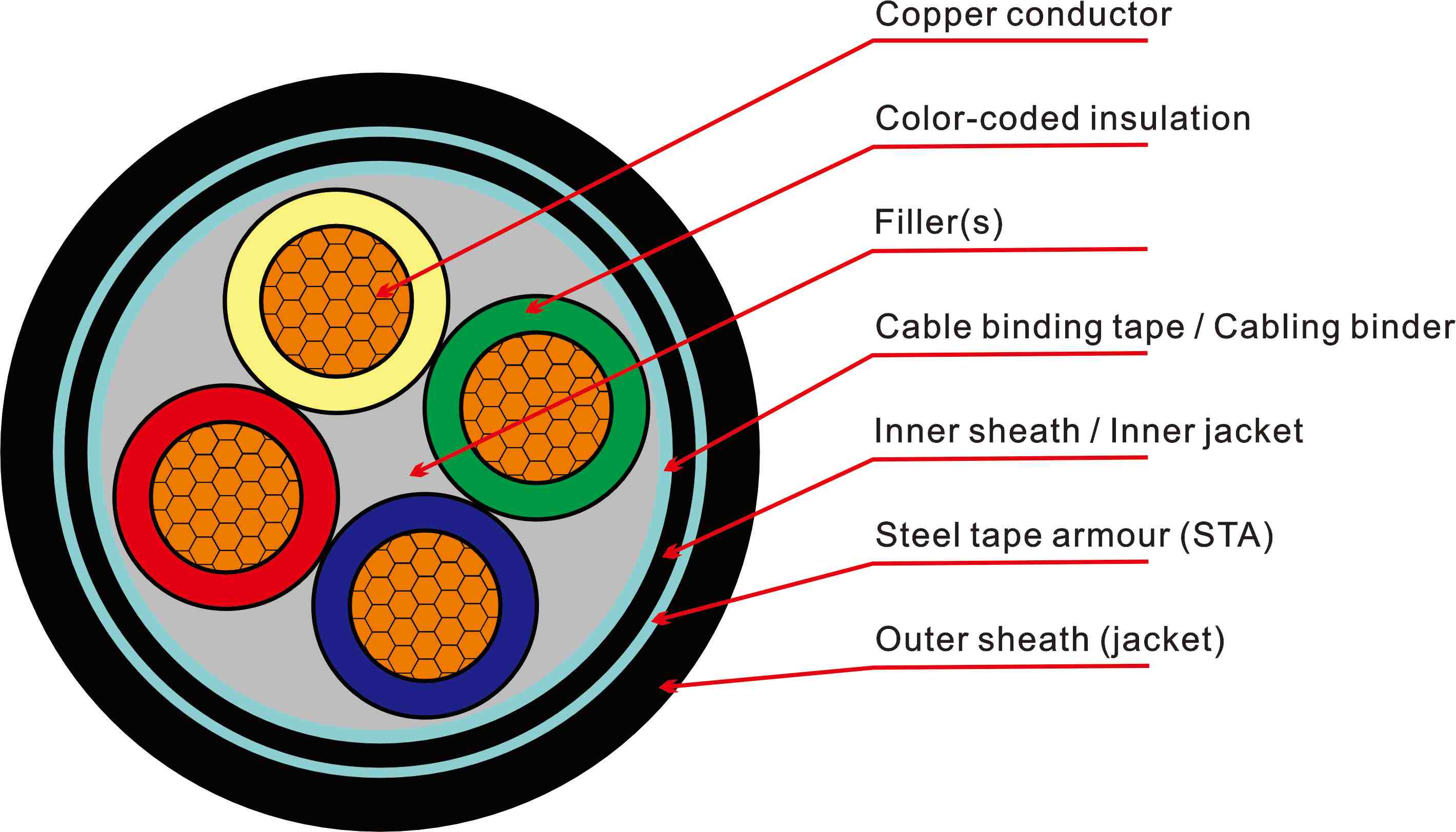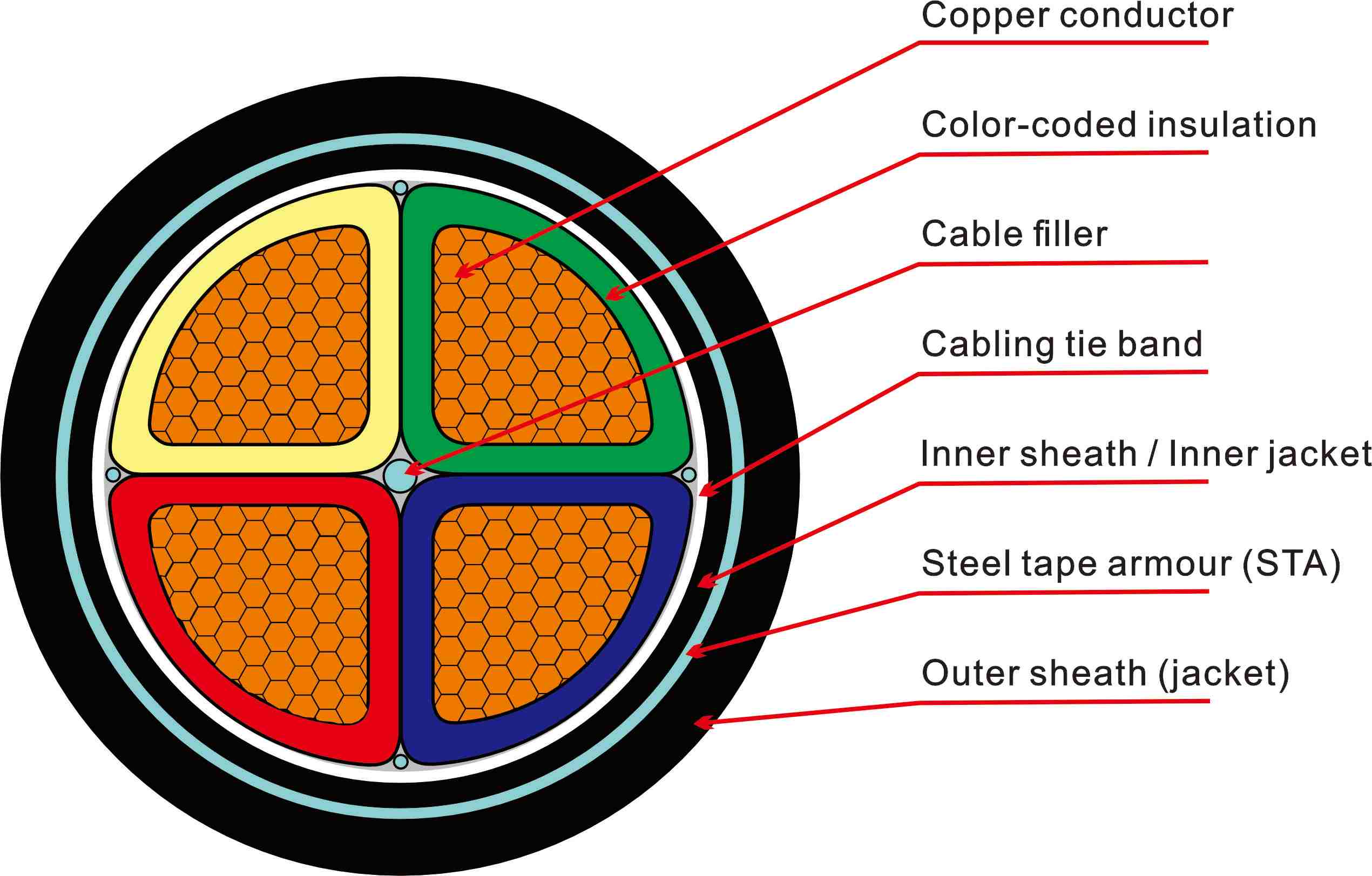 Protección mecánica: Armadura de cinta de acero (STA) o armadura de alambre de acero (SWA) para una mayor durabilidad